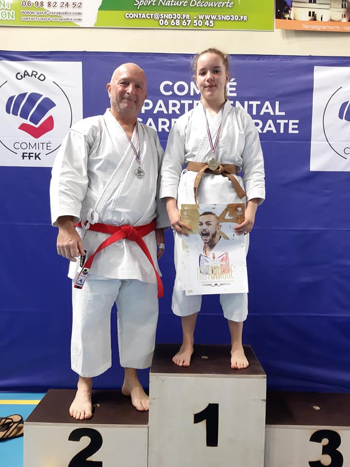 Ce matin notre club s'est déplacé à bouillargues pour le championnat kata du gard. Ysolde gagne sa finale, médaille d'or et je finit second dans la catégorie senior, pour un soixantenaire, c'est pas mal